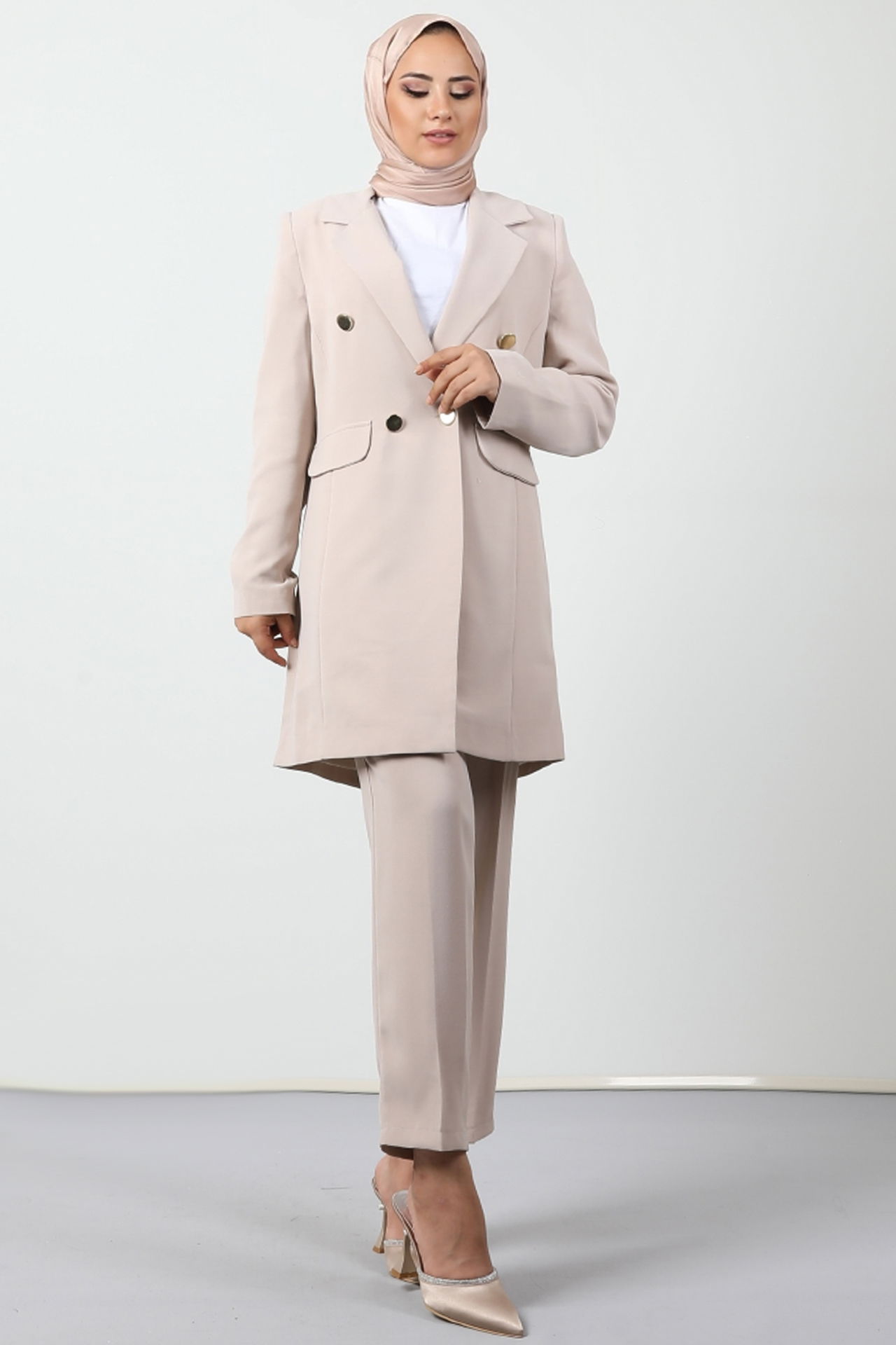 Blazer Ceket Takım Bej