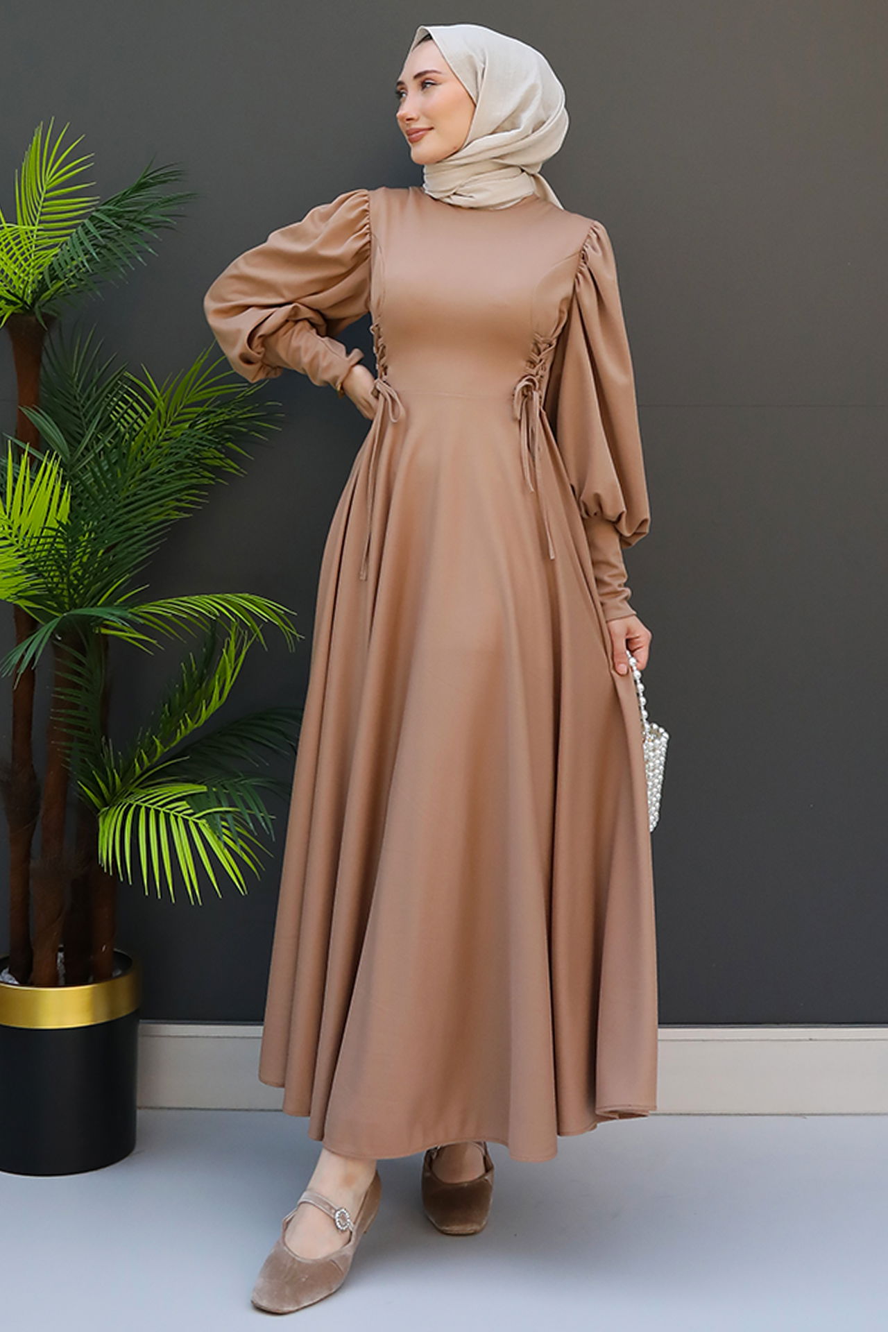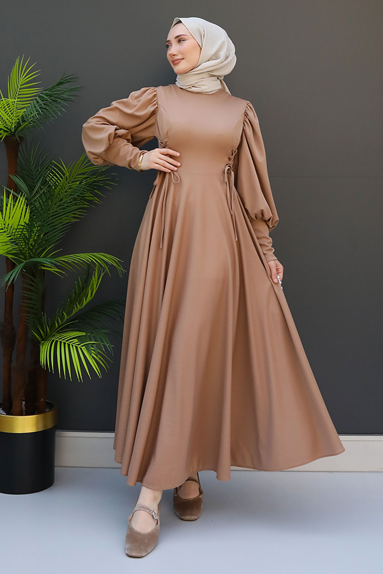 İp Kuşaklı Elbise Sütlükahve