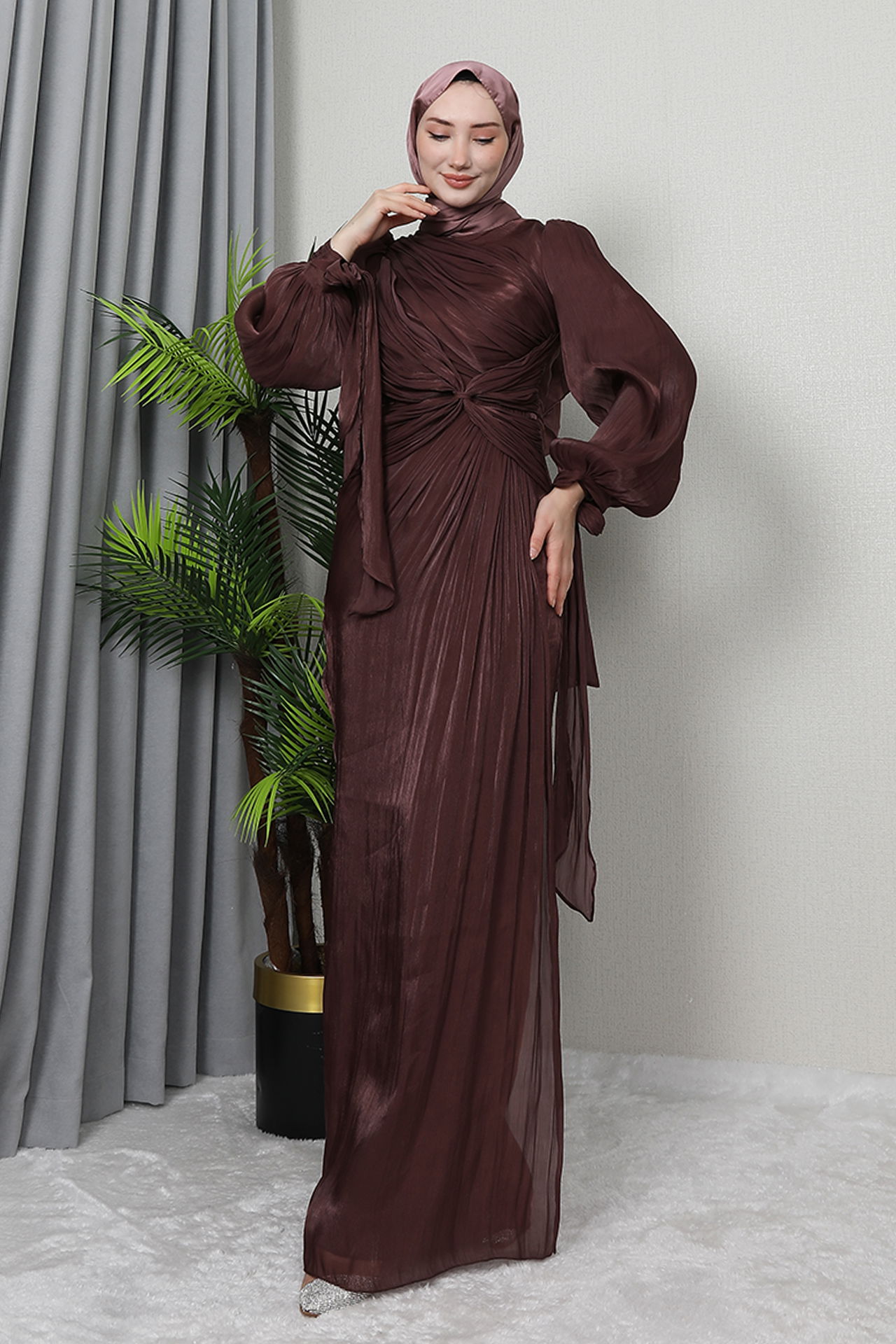 Mahur Tesettür Abiye Gül Kahve