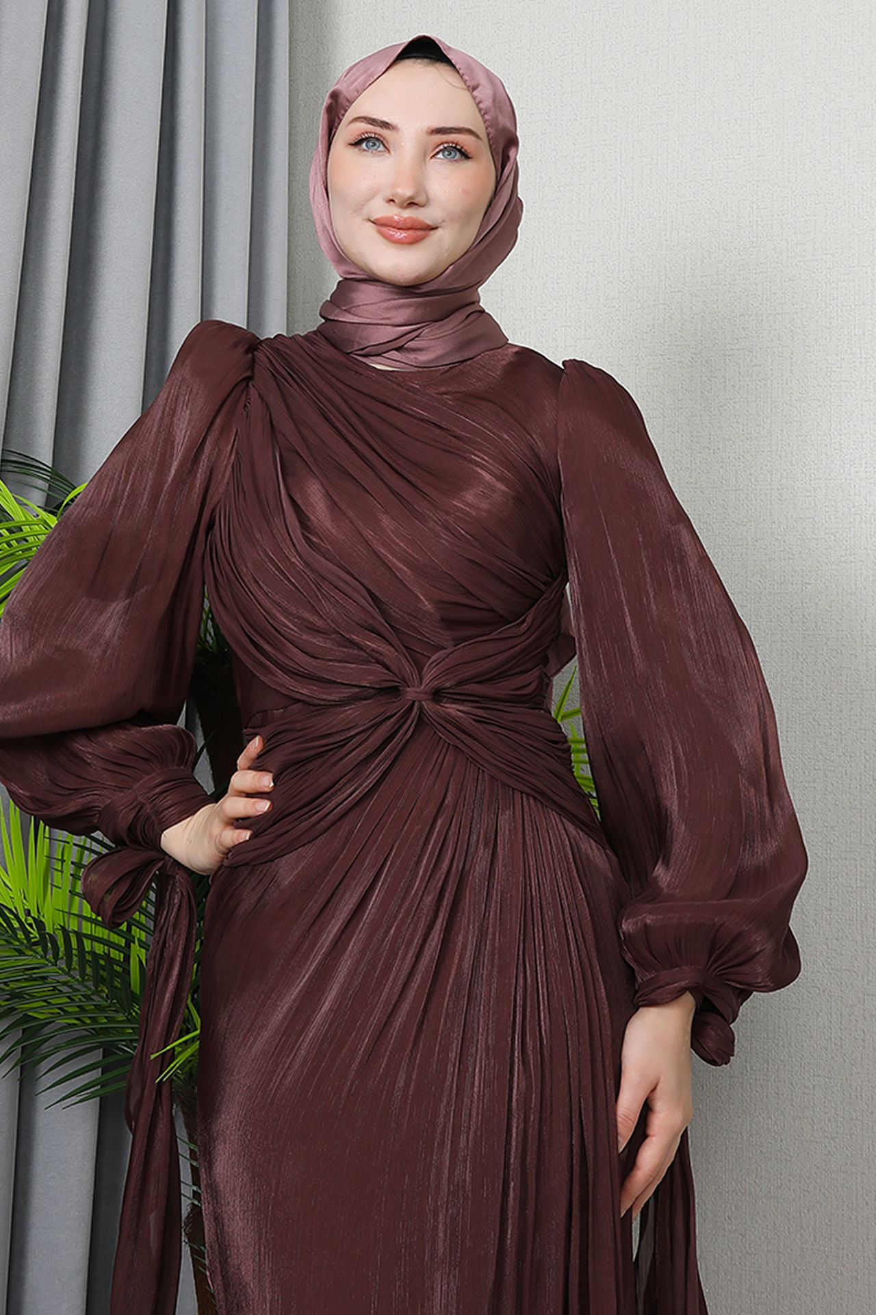 Orkide İpek Abiye Koyu Gül Kahve