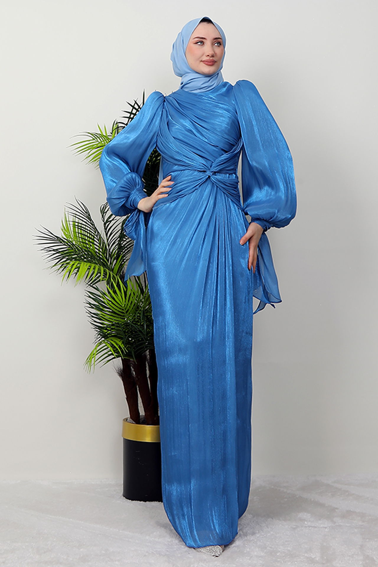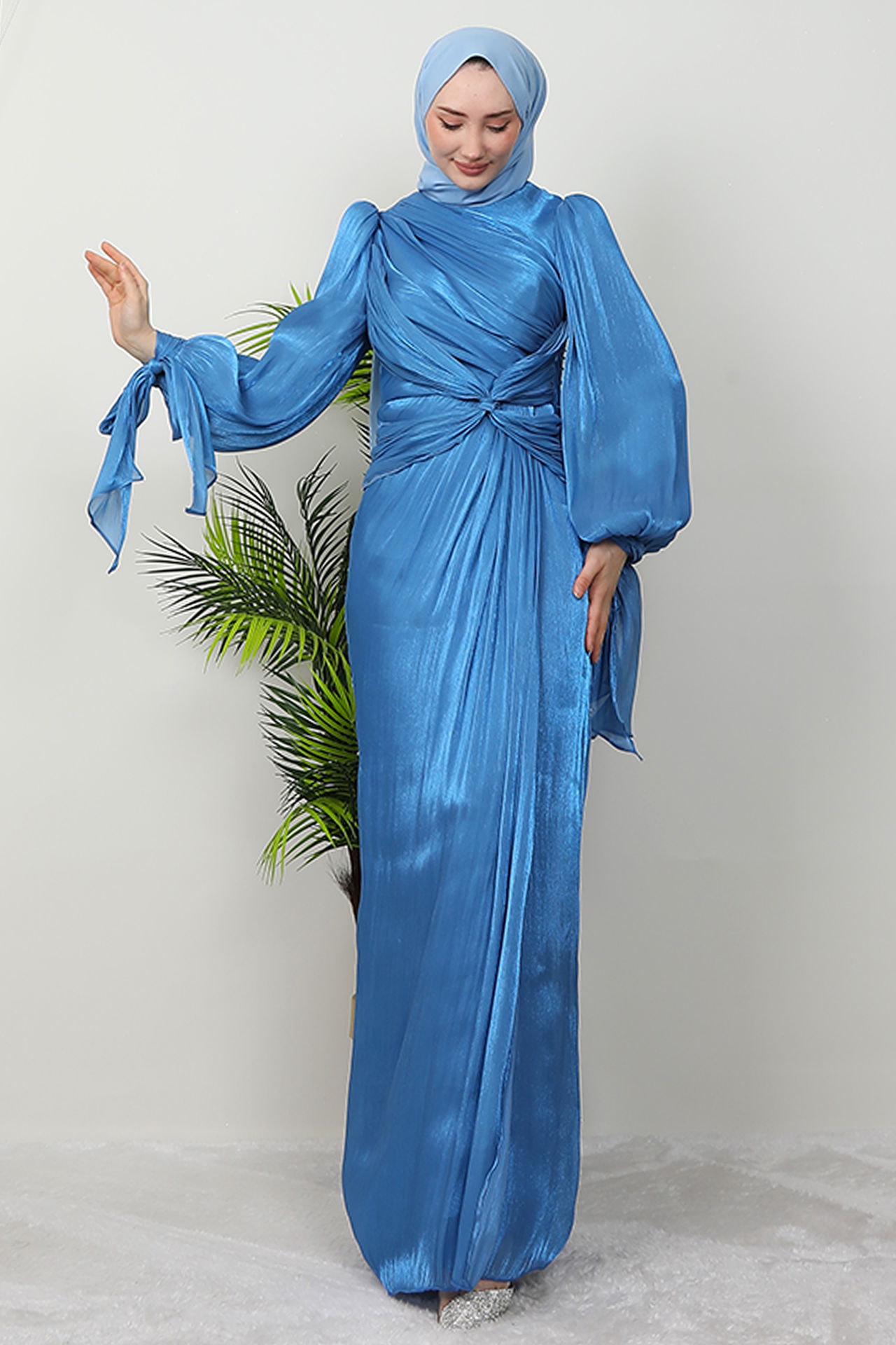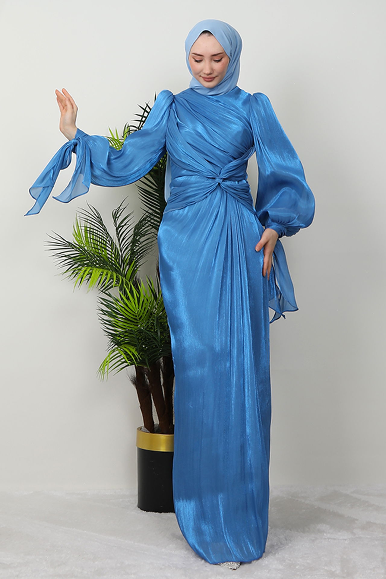 Orkide İpek Abiye Mavi